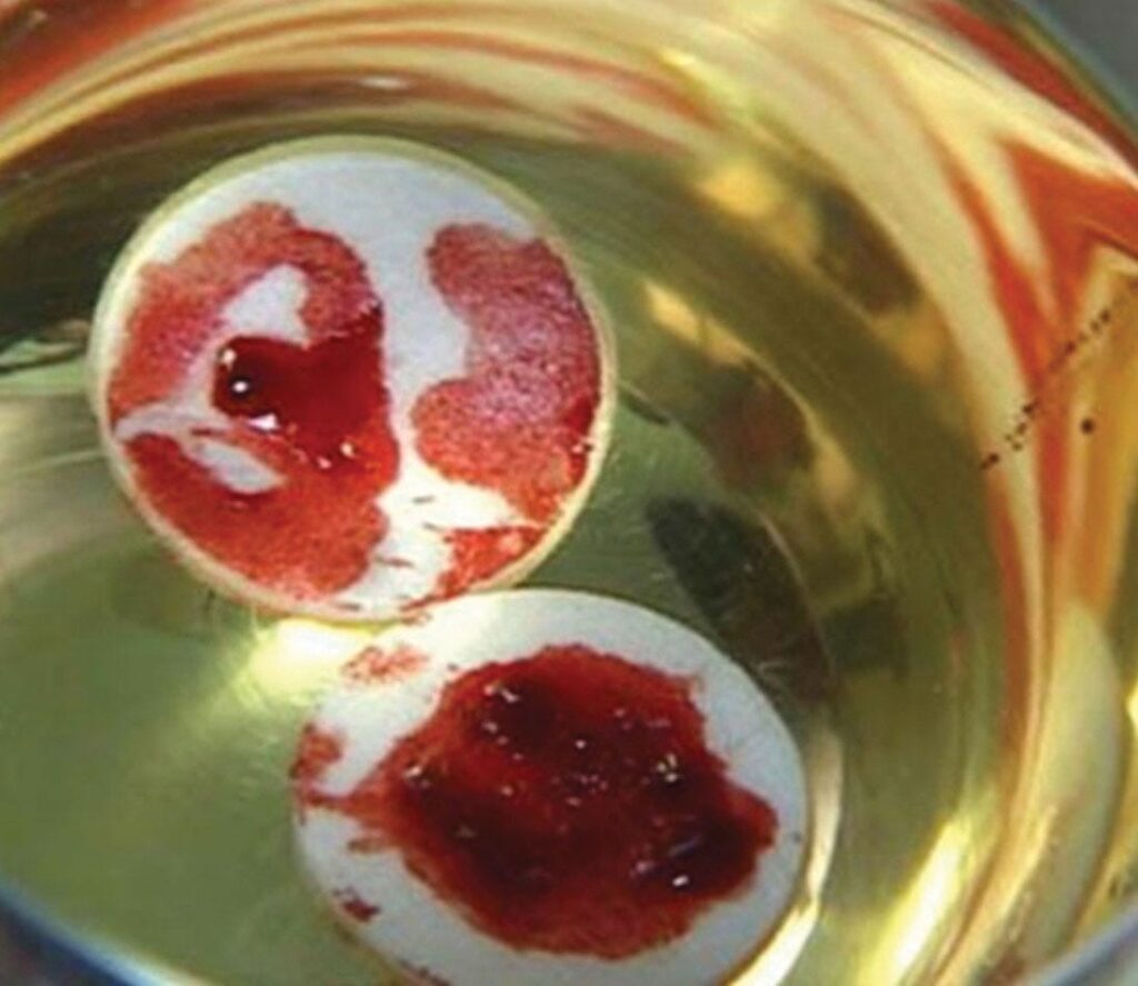 ദിവ്യകാരുണ്യ അത്ഭുതത്തിന്റെ ശാസ്ത്രിയ വിശകലനം; തിരുവോസ്തിയുടെ നടുക്കുള്ള ഭാഗം, തിരുവോസ്തിയിൽ
