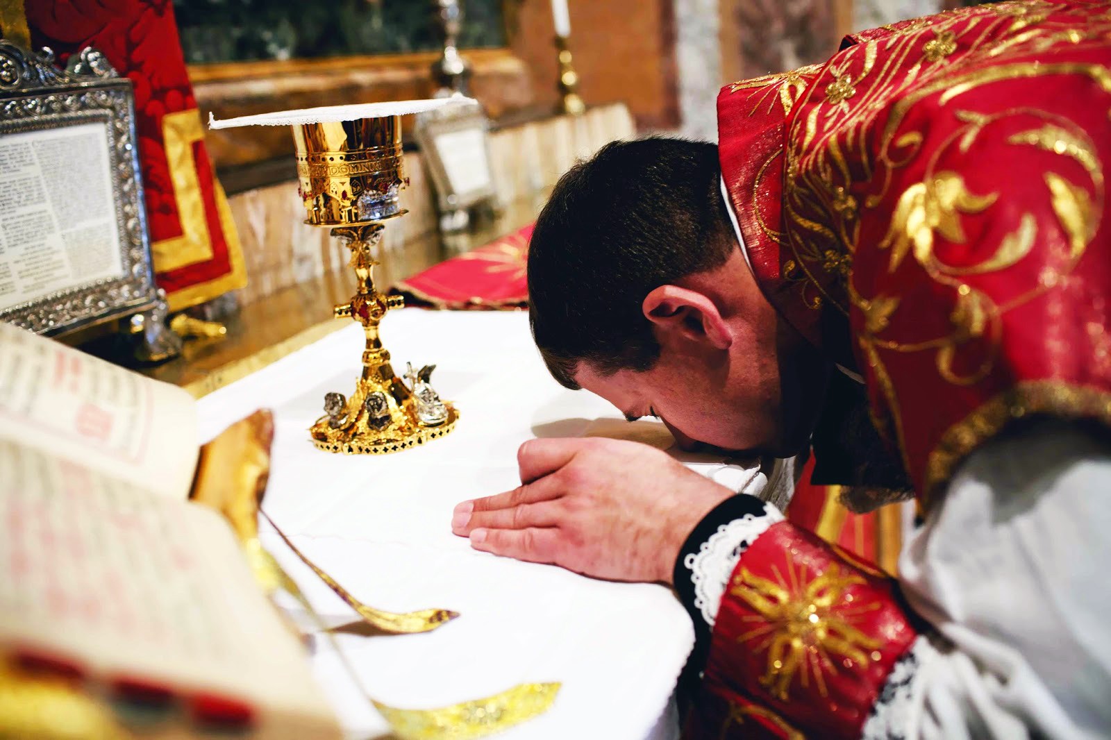 ബലി പരികർമ്മം ചെയ്യാൻ വൈദികൻ യോഗ്യനല്ല; തന്റെ അയോഗ്യത വ്യക്തമാക്കിക്കൊണ്ട് മൂന്ന് പ്രാവശ്യം കുമ്പിട്ട് പ്രാർത്ഥിച്ച് വൈദികൻ ആൾത്താരയിലേക്ക് പ്രവേശിച്ച് അതി വിശുദ്ധ സ്ഥലത്തു പ്രവേശിക്കാൻ അനുവദിച്ച