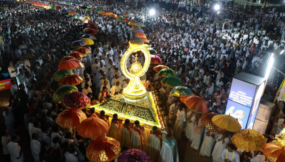 ശക്തമായി കാറ്റടിച്ച് ക്ഷോഭിക്കുന്ന കടലിൽ ആശ്വാസമാകുന്ന ക്രിസ്തു സാന്നിധ്യം ( യോഹ 6 , 18 ) ; വിശുദ്ധ കുർബാന സാന്നിധ്യം തന്നെയാണ്. ലക്ഷ്യം തെറ്റിക്കുന്ന അനുദിന അസ്വസ്ഥതകളെ നേരിടാൻ അവർക്ക് കഴിയുന്നത് ആശ്വാസമാകുന്ന ക്രിസ്തു സാന്നിധ്യം വഴിയാണ്. തങ്ങളുടെ ജീവിതത്തിന്റെയും, ശുശ്രൂഷയുടെയും, യഥാർത്ഥ കേന്ദ്രമായും, വൈവിധ്യമാർന്ന അജപാലന ഉത്തരവാദിത്തങ്ങൾ നിർവഹിക്കുന്നതിന് വേണ്ട ആത്മീയ ശക്തിയായും ഓരോ ക്രൈസ്തവനും ദിവ്യബലിയെ കാണാൻ സാധിക്കണമെന്നു പറഞ്ഞത് വിശുദ്ധ ജോൺ പോൾ രണ്ടാമൻ ആണ്. ക്ഷോഭിച്ച കടലിനു മുകളിലൂടെയുള്ള ക്രിസ്തുവിന്റെ യാത്ര ദിവ്യകാരുണ്യ പ്രദിക്ഷണം തന്നെയാണ്. സ്വീകരിച്ചയപ്പം അപ്പമായി നിൽക്കുമ്പോൾ അപകടം നിറഞ്ഞ യാത്രകൾ ആകുലതകൾ നൽകും. എവിടെയും എത്തിച്ചേരാനും ഒപ്പം സഞ്ചരിക്കാനും ആകുന്ന സാന്നിധ്യമാണ് ദിവ്യകാരുണ്യ സാന്നിധ്യം.
